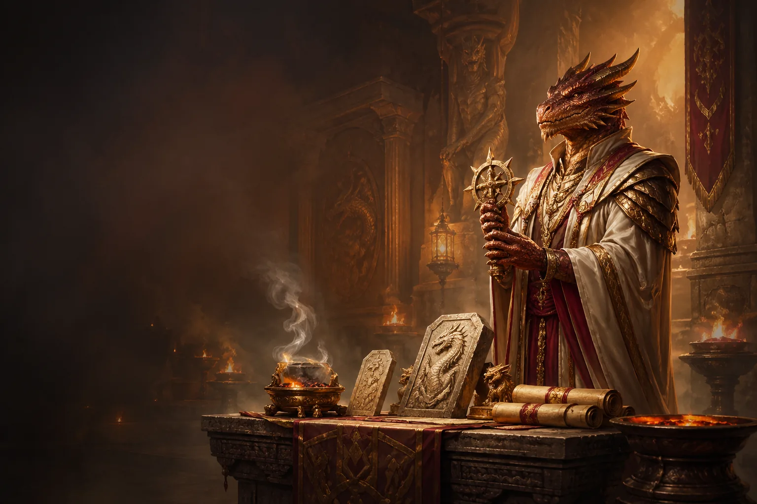 Learn how Dragonborn Cleric names combine draconic pride with ritual language, sacred titles, and temple-weighted cadence.